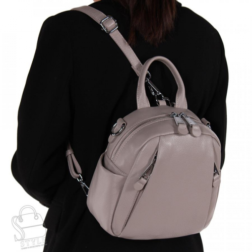 Рюкзак-трансформер, выполнен из натуральной кожи. Дополнен серебристой фурнитурой. Данная модель закрывается на молнию. Каркас мягкий. Носится через плечо за текстильный ремень как сумка или на плече за встроенные ремни как рюкзак.