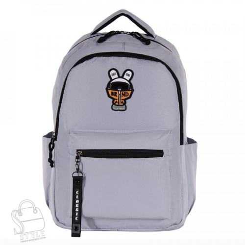 Снаружи: Основной отдел закрывается на клапан. На передней части два кармана и на задней части карман на молниях. 900