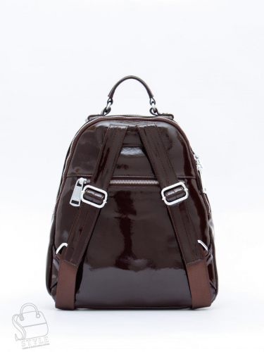 Классический рюкзак, выполнена из натуральной лаковой кожи. Дополнен серебристой фурнитурой. Данная модель закрывается на молнию. Носится в руке за петельку. Или на плече, встроенные ремни регулируются по длине. Каркас полужесткий.