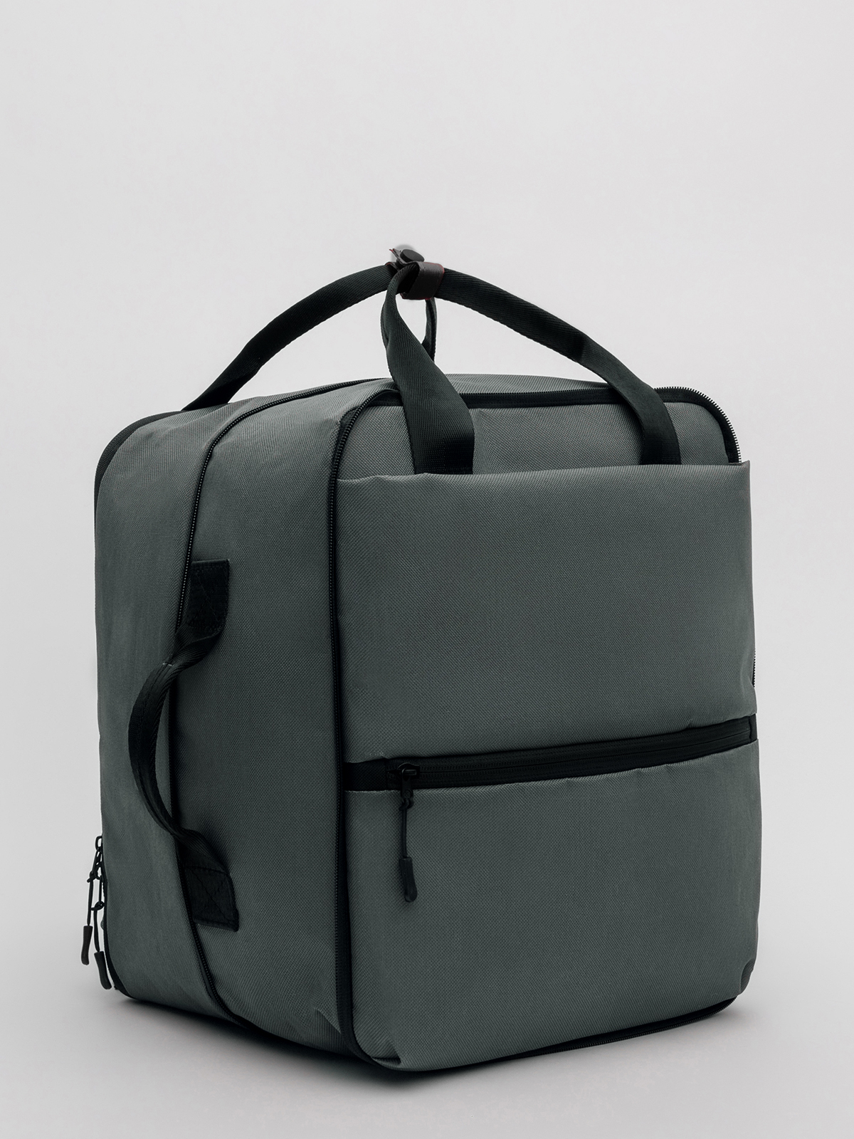 Рюкзак-трансформер увеличивается в ширину на 12 см и превращается в дорожный саквояж, который по габаритам является ручной кладью для стандартов авиакомпании "Победа". Имеет крепление на ручку чемодана.