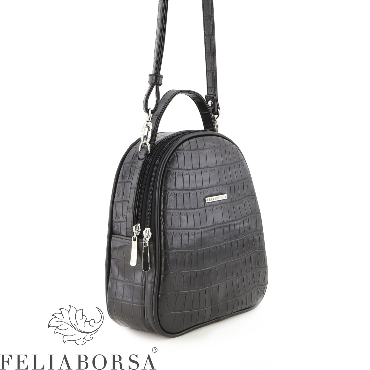 Рюкзак женский Feliaborsa, мягкий на регулируемых заплечных ремнях и маленькой ручке сверху. Два отделения на молнии. Задняя стенка: карман на молнии. Внутри: открытый карман и карман на молнии.