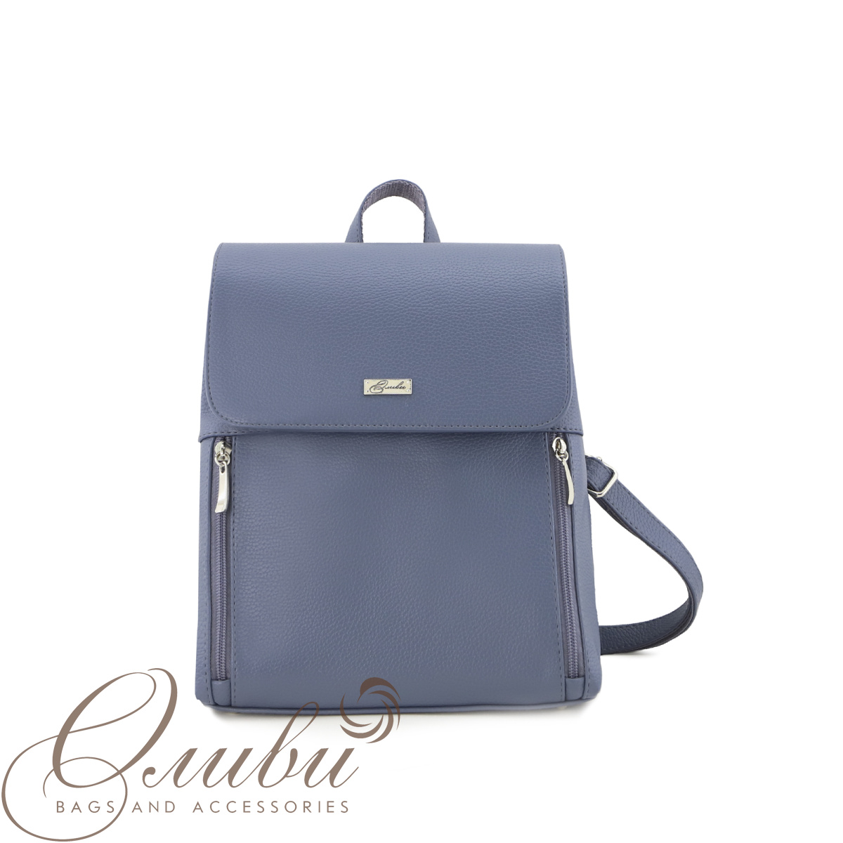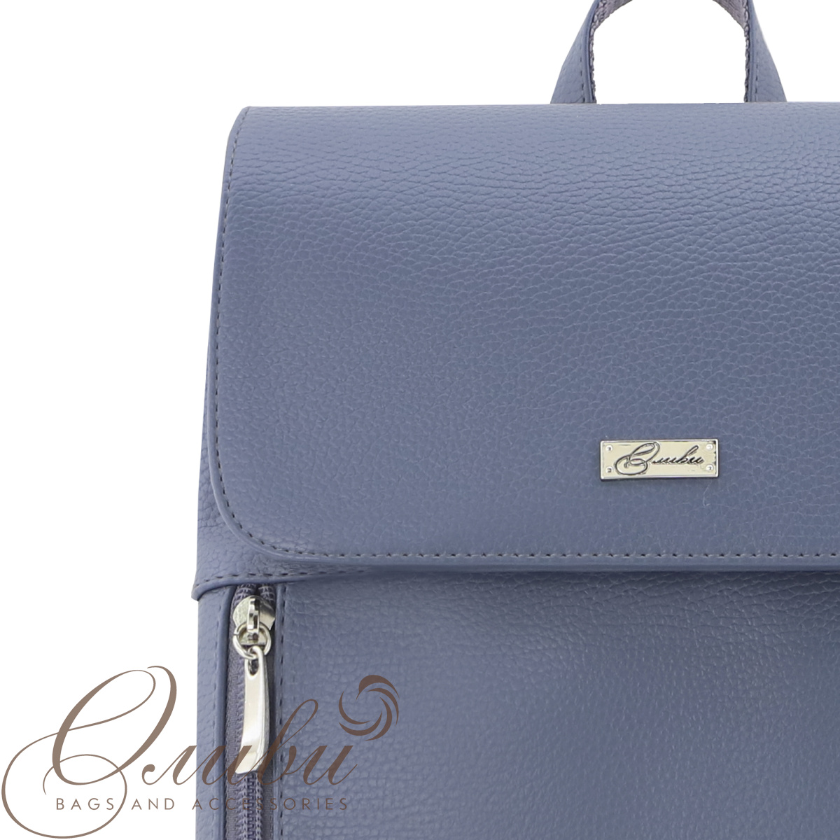 Рюкзак женский Оливи, мягкий с клапаном на регулируемых заплечных ремнях и маленькой ручкой. Два отделения на молнии. Передняя стенка: два кармана на молниях. Задняя стенка: карман на молнии. Внутри: карман на молнии.