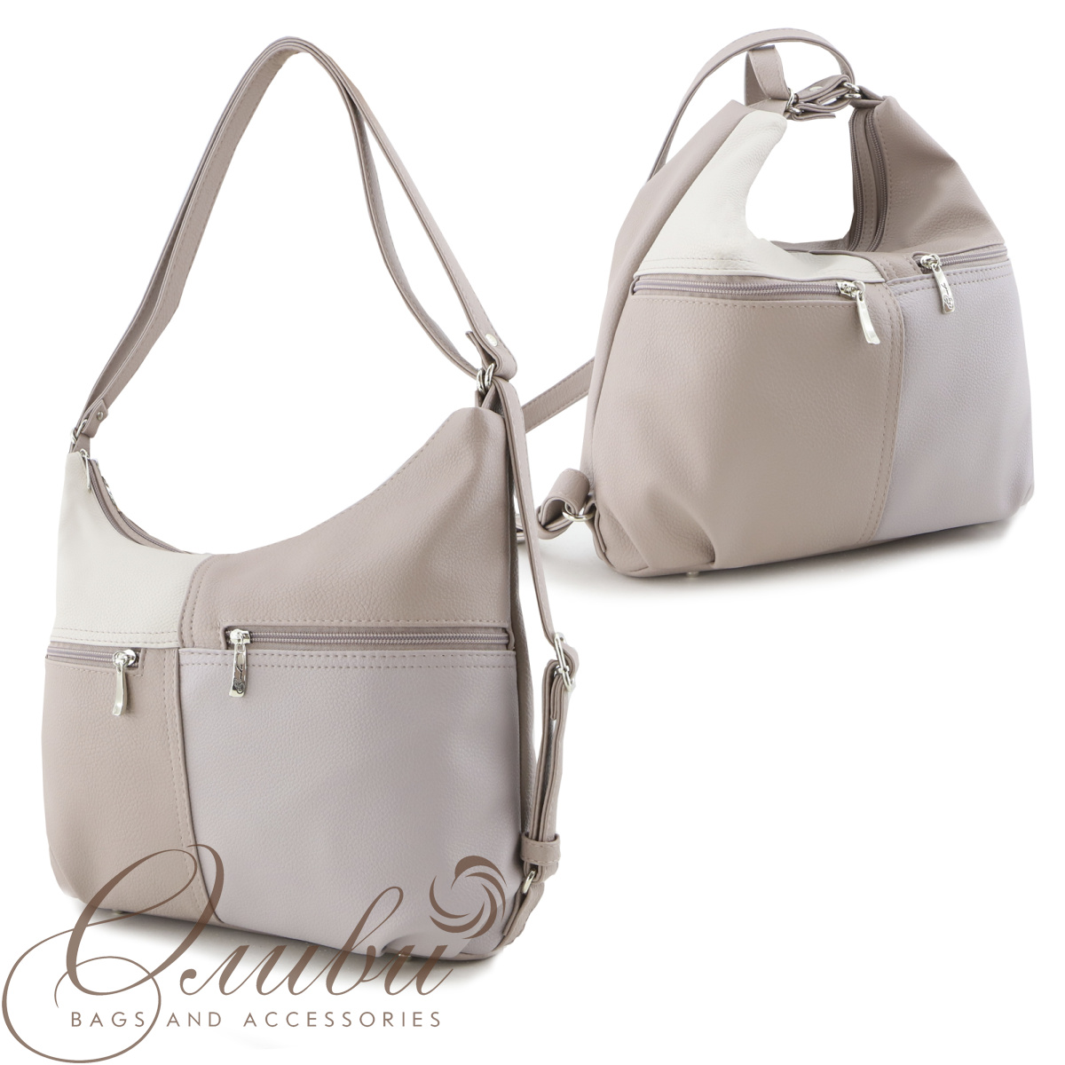 Сумка-рюкзак женская Оливи, мягкая на двух регулируемых ручках. Два отделения на молнии.Внутри: карман для документов на молнии, открытый карман, закрытый карман. Передняя стенка - два кармана на молнии. Задняя стенка - карман на молнии
