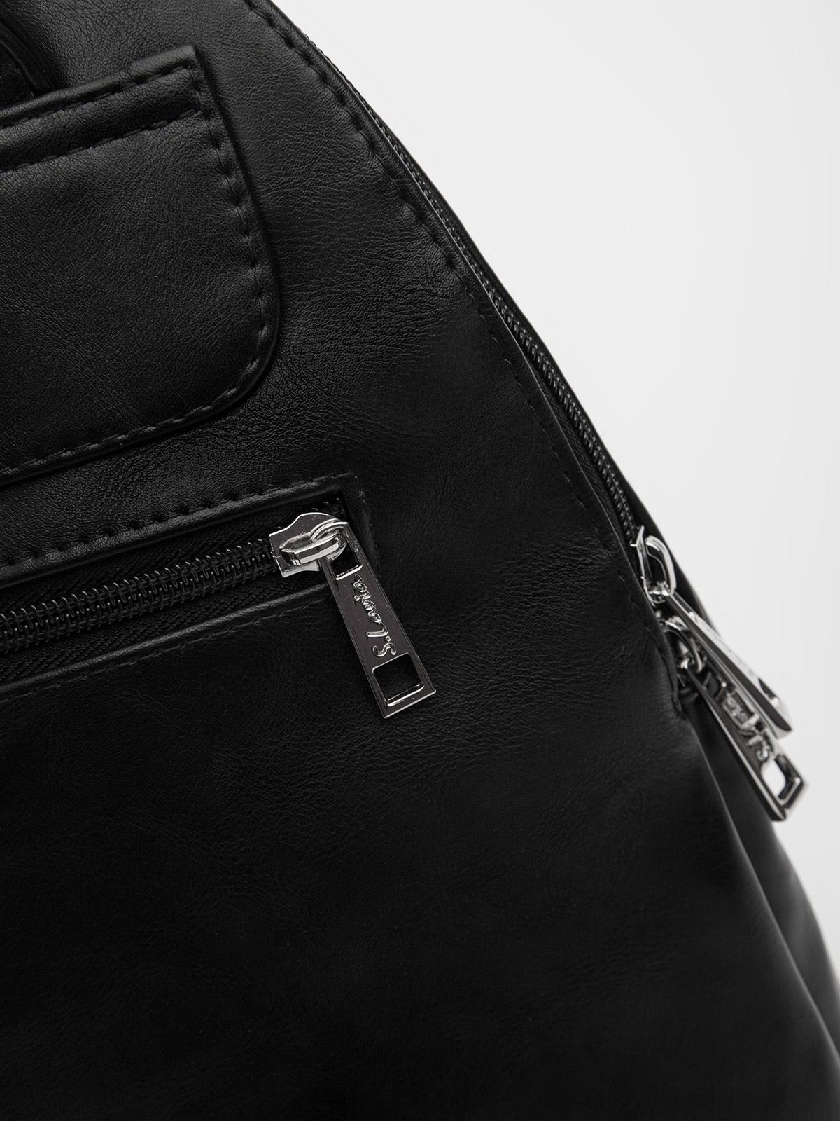 Его выразительную фактуру подчеркивает рельефное тиснение и мягкие складки по бокам, создающие объем без громоздкости. Передние прорезные карманы на спиральной молнии с кожаными наконечниками бегунков добавляют практичности, сохраняя элегантность линий.