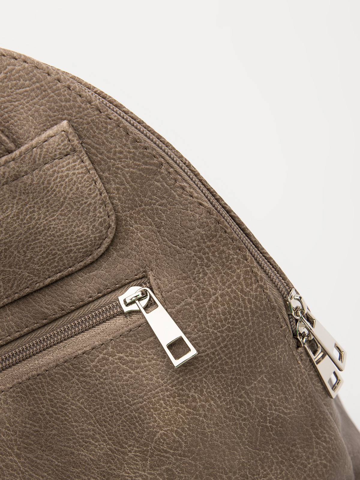 Его выразительную фактуру подчеркивает рельефное тиснение и мягкие складки по бокам, создающие объем без громоздкости. Передние прорезные карманы на спиральной молнии с кожаными наконечниками бегунков добавляют практичности, сохраняя элегантность линий.