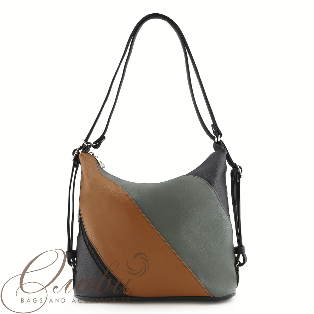 Сумка-рюкзак женская Оливи, мягкая на двух регулируемых ручках. Одно отделение на молнии. Передняя стенка: карман на молнии. Внутри: карман-перегородка на молнии, открытый карман. Задняя стенка - карман на молнии.