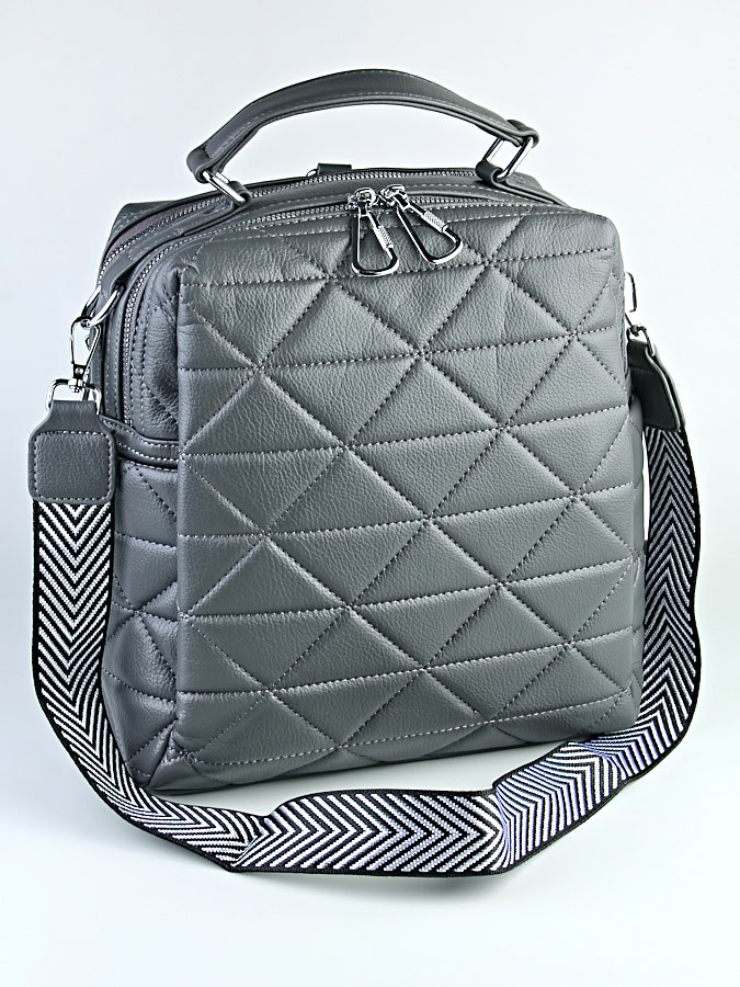 2 основных отделения, внутри которых 1 карман на молнии и 1 открытый. На внешней части 2 боковых кармана и с тыльной стороны 1 карман на молнии. Можно носить через плечо, благодаря дополнительному ремню.