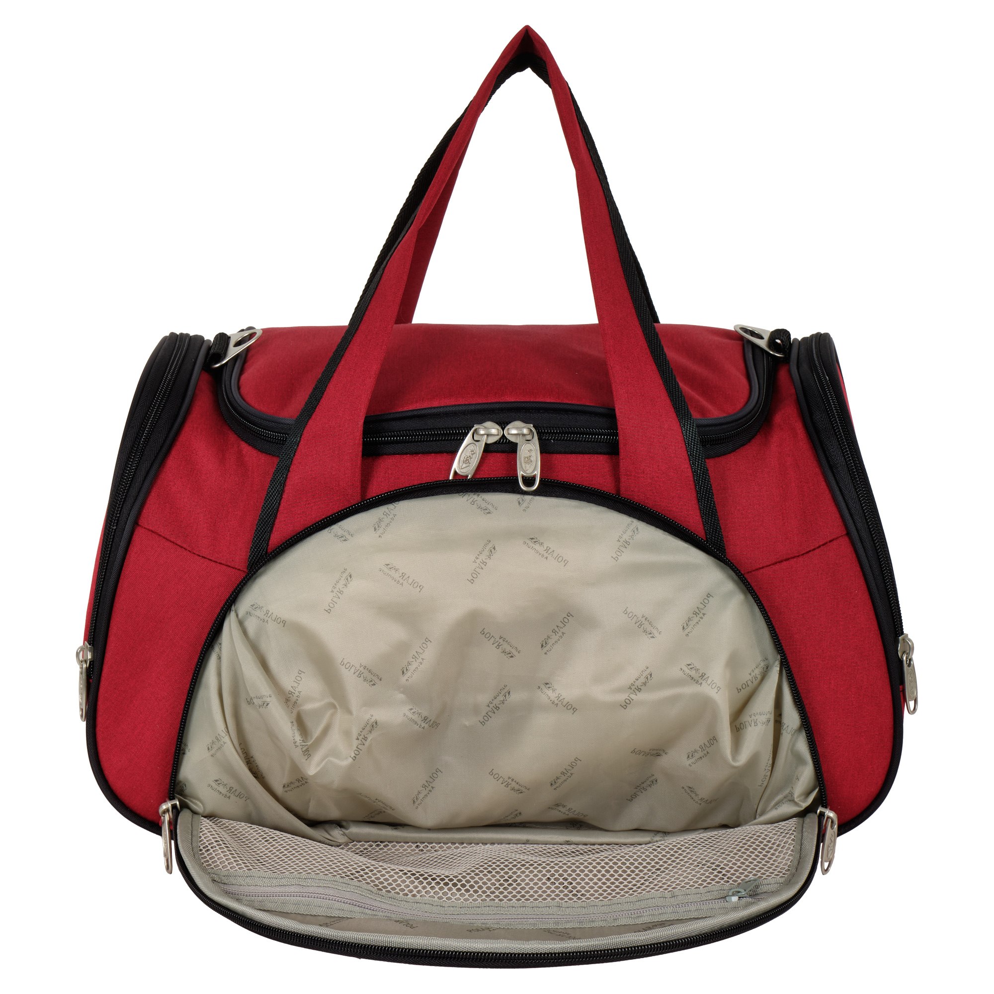Вместительная и удобная дорожная сумка Polar . Основное отделение закрывается на молнию. Один из боковых карманов предназначен для обуви, мокрых вещей. Дополнительно снаружи большой карман на молнии спереди сумки и небольшие карманы по бокам.  В дорожную сумку легко помещаются спортивная форма, обувь или вещи для поездки. В комплекте регулируемый съемный плечевой ремень.