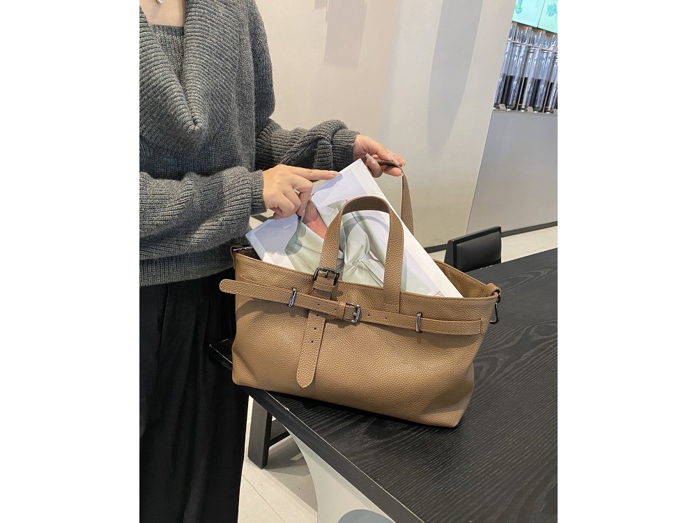 Сумка оснащена двумя регулируемыми ручками , а также длинным регулируемым ремнем, позволяющим носить сумку на плече или через плечо.