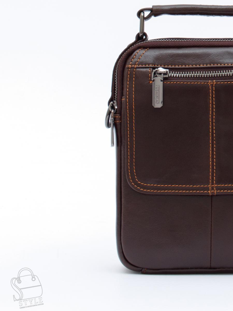 Сумка мужская кожаная 632M brown Fuzhiniao в Новосибирске