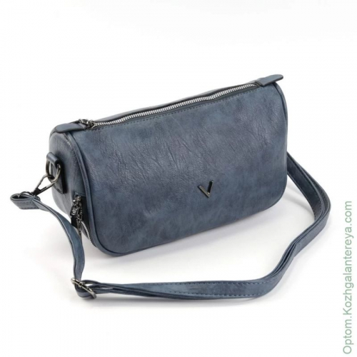 Женская сумка из качественной искусственной кожи синего цвета. Закрывается на молнию, внутри одно отделение и боковые кармашки, один на молнии и два открытых. Снаружи, на задней стенке карман на молнии. На дне сумки металлические ножки. Наплечный ремень регулируется по длине.