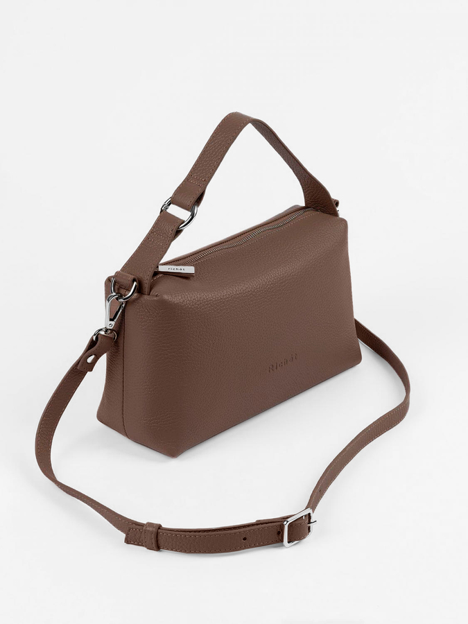 Великолепная функциональная сумка кросс-боди из натуральной кожи от Richet (РИШЕ) закрывается на молнию.