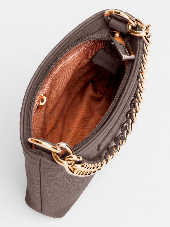 Эта стильная сумочка из натуральной кожи станет идеальным аксессуаром для любой современной женщины. Её компактные размеры делают её удобной для повседневного использования, а декоративная цепь добавляет образу изысканности. При необходимости цепь можно снять, чтобы создать более лаконичный образ.