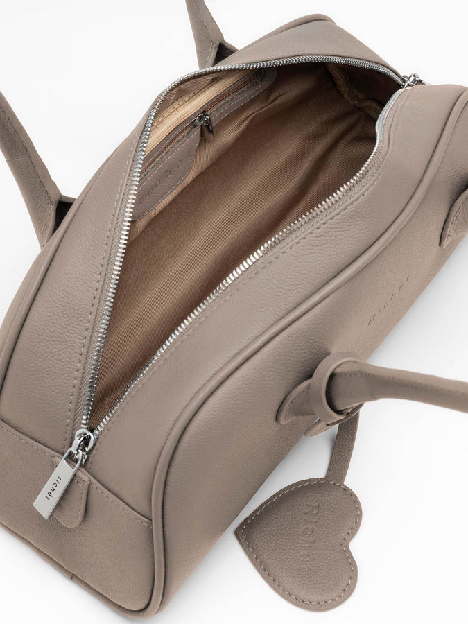 Великолепная функциональная сумка-багет из натуральной кожи от Richet (РИШЕ) закрывается на молнию в стилистике bowling bag.