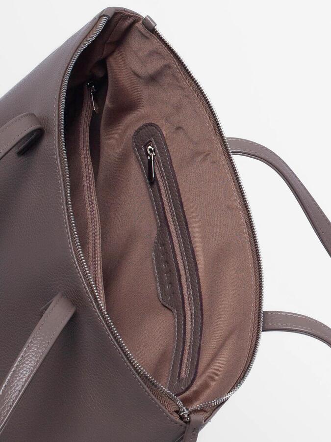 Внутри сумки перегородка на молнии для удобного разделения пространства, а также карман на молнии для хранения мелких предметов (паспорт и т.п.) и два открытых кармашка для смартфона или других вещей.