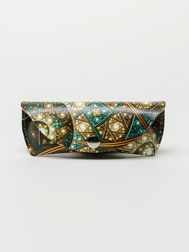 чехол для очков принт Стильный чехол для очков. Изготовлен из натуральной кожи, фиксируется кнопкой. Современные разнообразные принтов позволяют носить чехол с любой одеждой. Чехол подходит для всех типов очков, от маленьких до больших . Размер:длина 16,5 см ширина 7 см