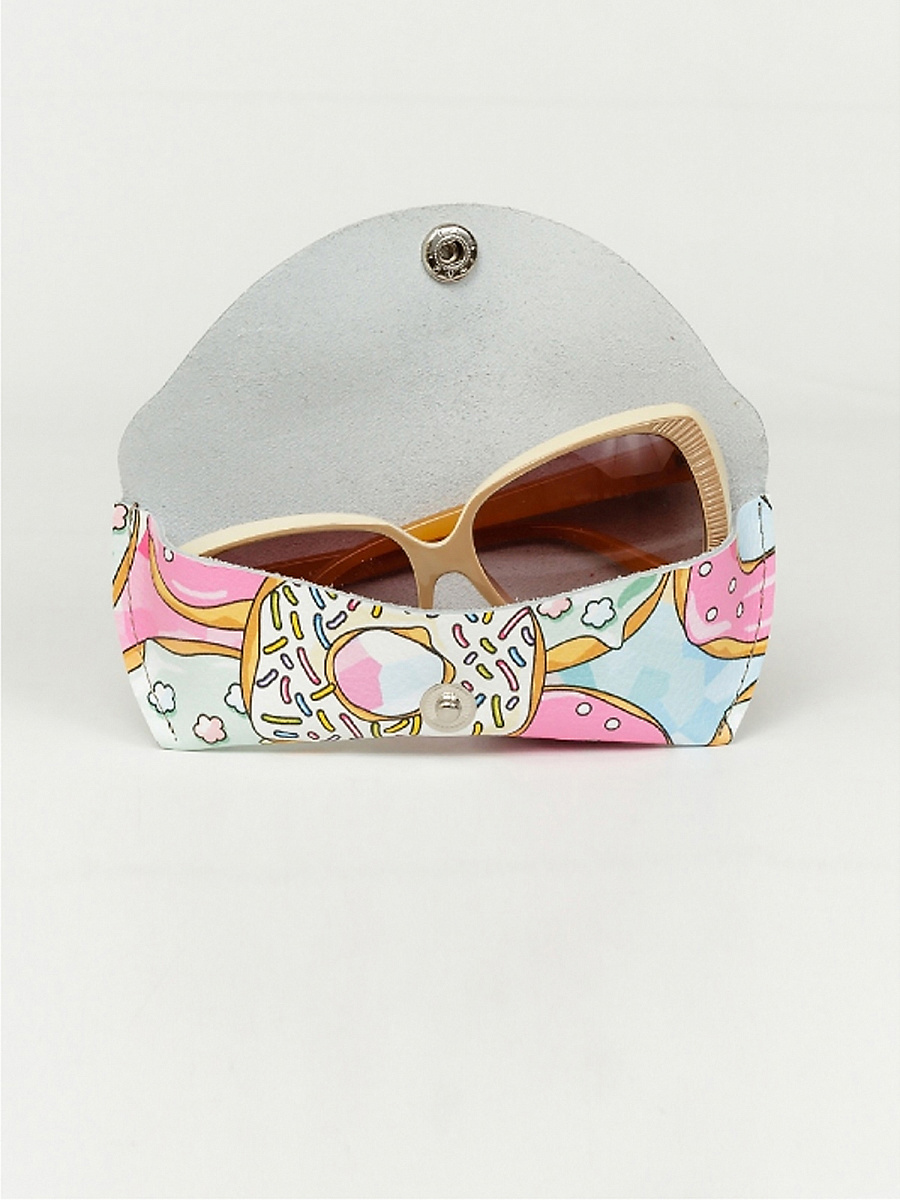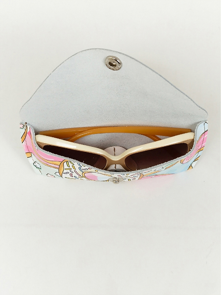 чехол для очков принт Стильный чехол для очков. Изготовлен из натуральной кожи, фиксируется кнопкой. Современные разнообразные принтов позволяют носить чехол с любой одеждой. Чехол подходит для всех типов очков, от маленьких до больших . Размер:длина 16,5 см ширина 7 см