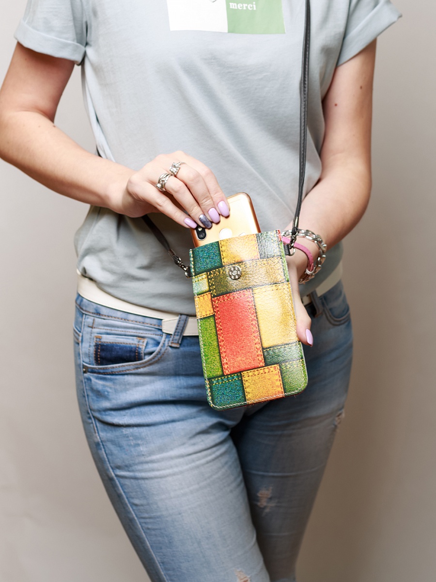 Стильная сумка-чехол для телефонов (для очков и карманом для карточки). Изготовлена из натуральной кожи, фиксируется магнитной кнопкой. Современные разнообразные принты позволяют носить сумку-чехол с любой одеждой. В комплекте прилагается тонкий элегантный плечевой ремешок из эко-кожи, который надежно крепится к чехлу карабинами, длина ремешка 120 см. Чехол подходит для всех телефонов, от маленьких до больших флагманских смартфонов а так же для больших телефонов в чехле.