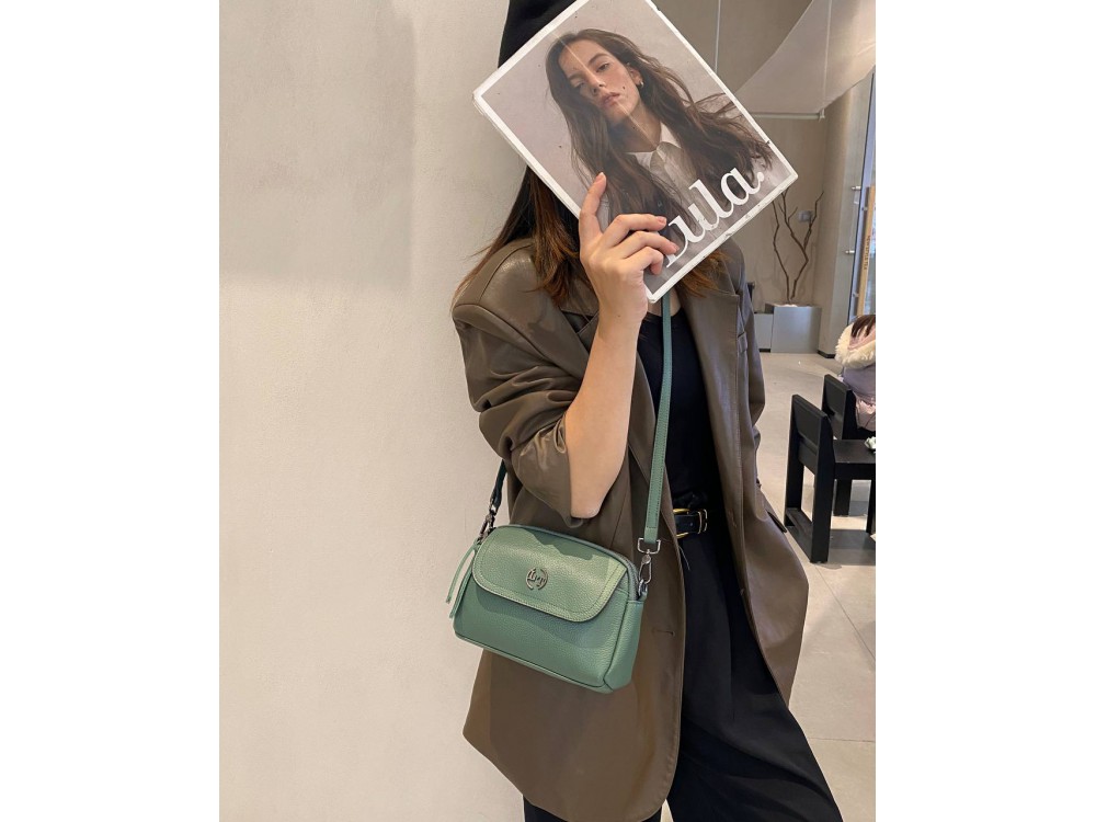 Сумка кросс-боди. В комплекте кожаный ремень с возможностью регулировки. Два основных отделения. Внутри: два кармана для аксессуаров, один из которых застегивается на молнию. Снаружи: спереди вместительный отдел под клапаном на магнитной клепке. Сзади: карман для мелочей на молнии.
