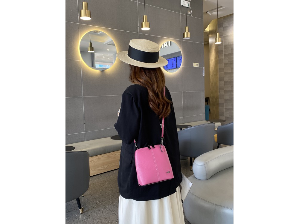 Белый цвет с легким эффектом перламутра. В комплекте длинный ремень с возможностью регулировки. Внутри: два отделения, между ними перегородка в виде кармана на молнии. Дополнительно два кармана для аксессуаров, один из которых застегивается на молнию. Снаружи: сзади карман для мелочей на молнии.