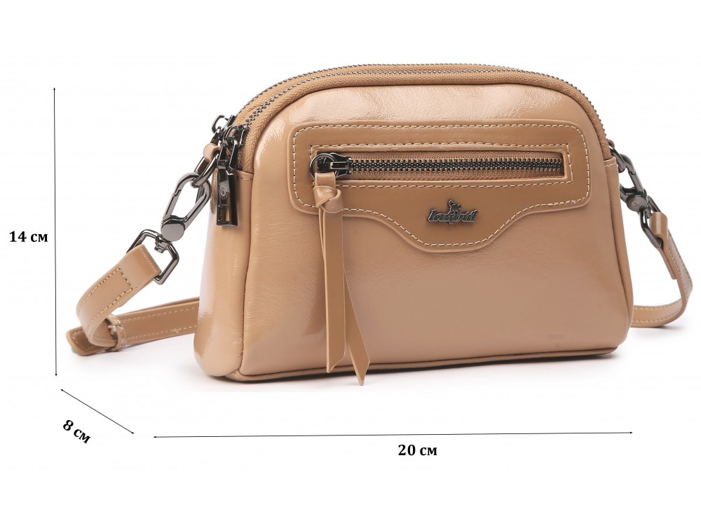 Сумка кросс-боди. В комплекте кожаный ремень с возможностью регулировки. Спереди: карман для мелочей на молнии.