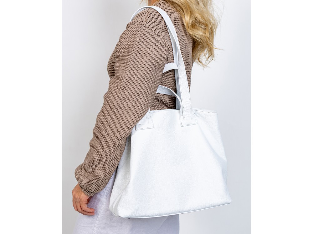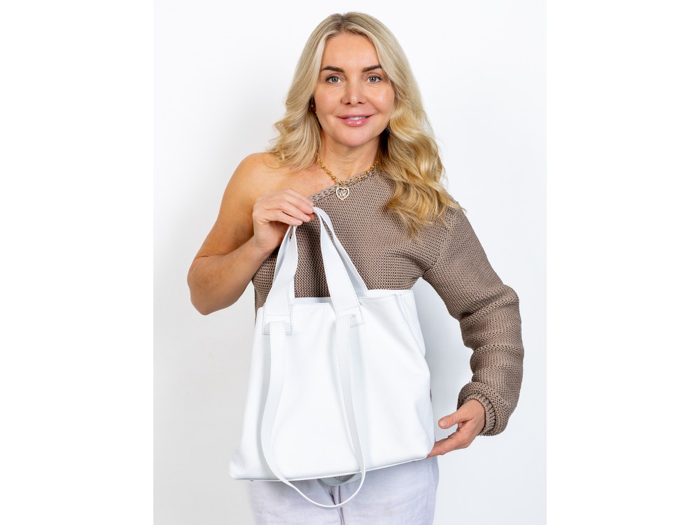 Сумка шоппер с 4 ручками, благодаря которым можно носить сумку на плече и в руках. Внутри сумки 2 основных отделения, которые разделяет дополнительное оттеление на молнии. В отделениях дополнительные карманы для мелочей.