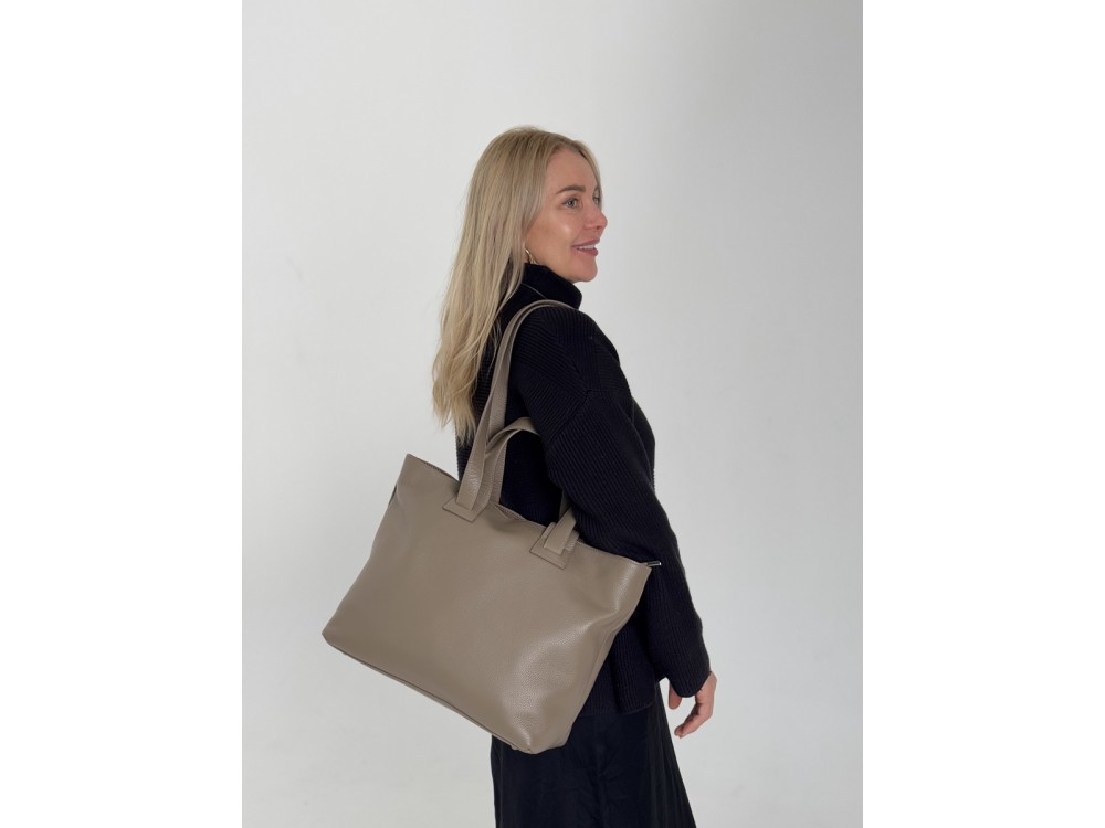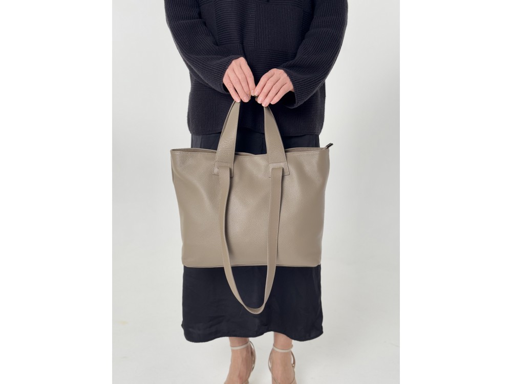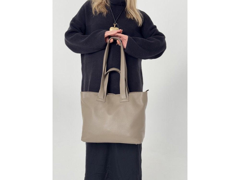 Сумка шоппер с 4 ручками, благодаря которым можно носить сумку на плече и в руках. Внутри сумки 2 основных отделения, которые разделяет дополнительное оттеление на молнии. В отделениях дополнительные карманы для мелочей.