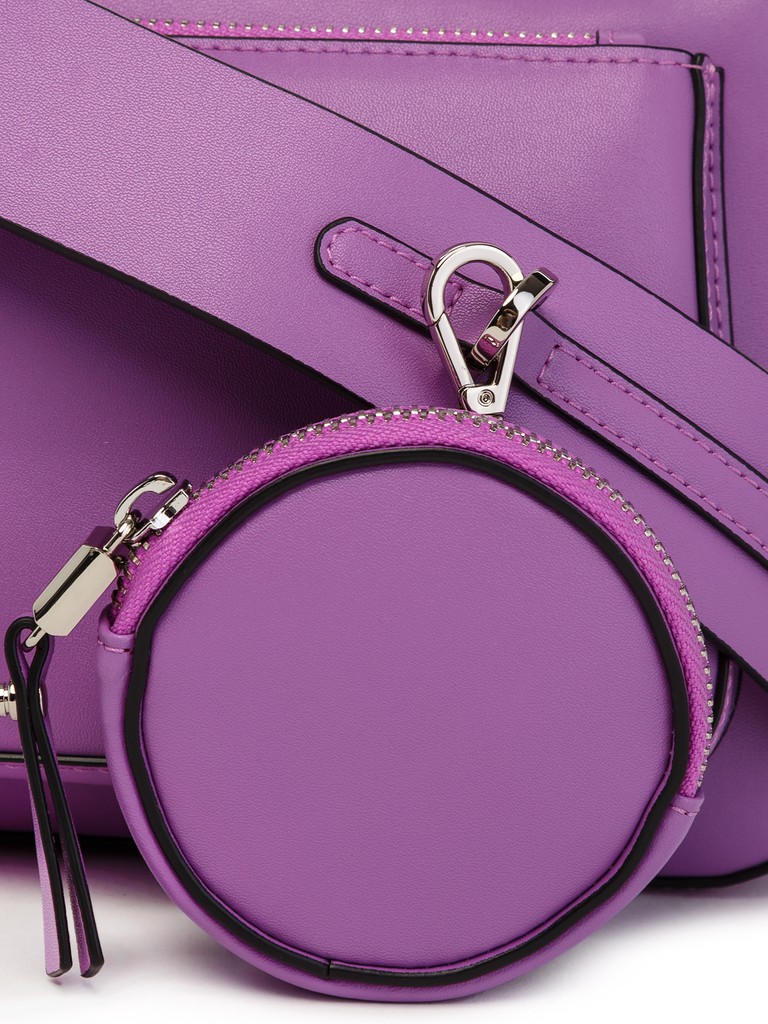 Женская сумка торговой марки Eleganzza из натуральной кожи. Модель закрывается на металлическую молнию и имеет внутри одно отделение с карманом на молнии и открытым карманом. На задней и передней стенках по одному карману на молнии. Высота ручки - 27 см. В комплекте два наплечных ремня: широкий и узкий. Длина широкого ремня - 105 см, ширина - 4 см. На широкий ремень крепится мини-кошелек на молнии. Модель не имеет ножки на дне.