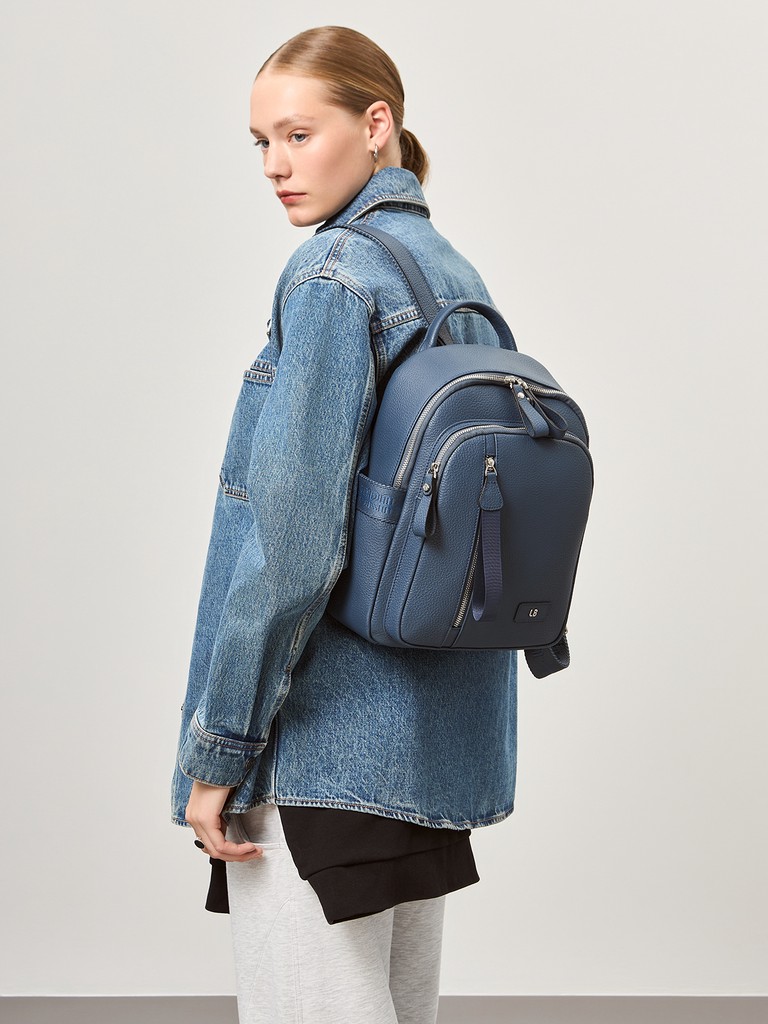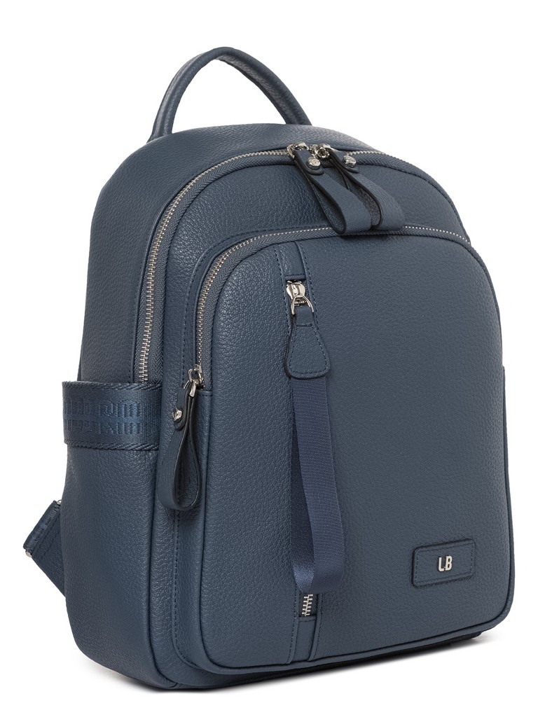 Женский рюкзак торговой марки Labbra из натуральной кожи. Модель застегивается на молнию. По бокам имеются открытые карманы. Внутри одно отделение с карманом на молнии и двумя открытыми карманами. На передней стенке два кармана на молнии. На задней стенке карман на молнии. Высота ручек - 8 см. Модель имеет ножки на дне. Вмещает формат А4.