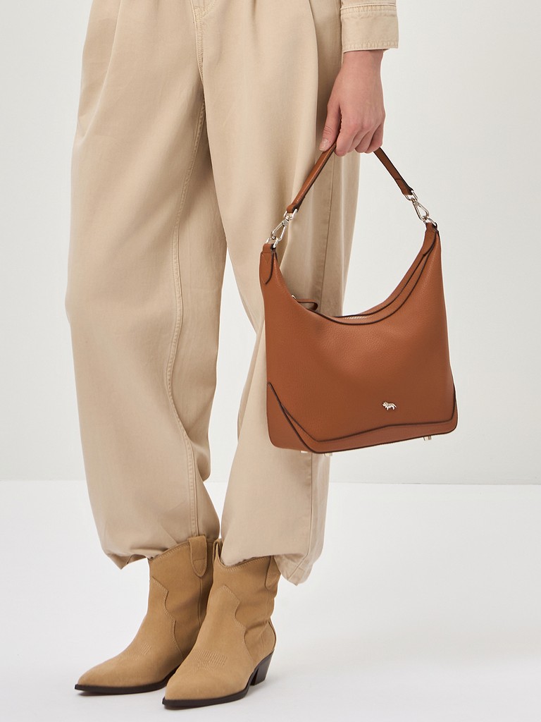 Женская сумка торговой марки Labbra из натуральной кожи. Модель застегивается на молнию. Содержит одно отделение, в котором имеются карман на молнии и два открытых кармана. На задней стенке есть карман на молнии. Высота ручки - 23 см. Длина регулируемого съемного плечевого ремня из натуральной кожи - 90 см, ширина - 1,5 см.  Модель имеет ножки на дне. Не вмещает формат А4.