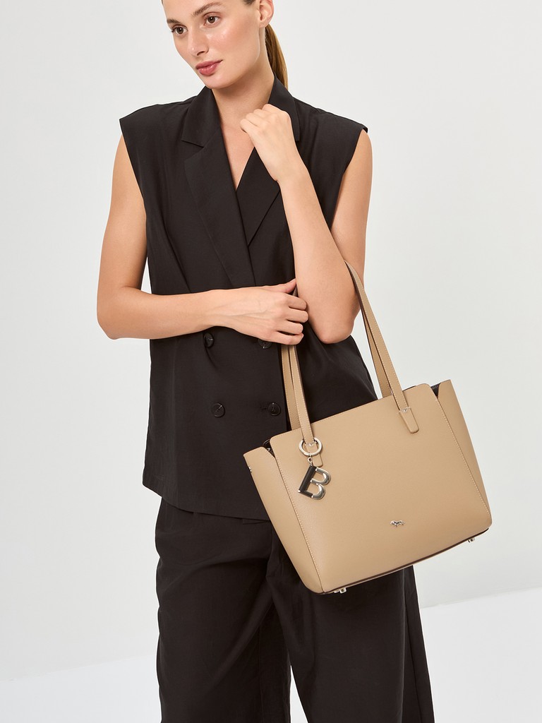 Женская сумка торговой марки Labbra из натуральной кожи. Модель застегивается на молнию. Содержит внутри один отдел, в котором имеются карман на молнии и два открытых кармана. По бокам имеются два отделения на магнитных кнопках. В одном отделении есть открытый карман.. Высота ручек - 26 см. Модель имеет ножки на дне. Не вмещает формат А4.