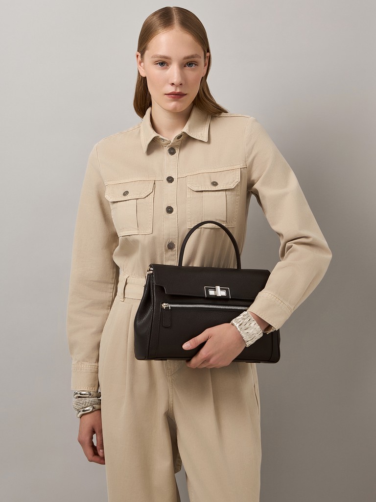 Женская сумка торговой марки Labbra из натуральной кожи. Модель закрывается клапаном на замок. Содержит внутри одно отделение, в котором имеются карман на молнии и два открытых кармана. На передней стенке есть карман на молнии. Высота ручки - 10 см. Длина регулируемого съемного плечевого ремня из натуральной кожи - 92 см, ширина - 1,8 см. Модель не имеет ножки на дне. Не вмещает формат А4.