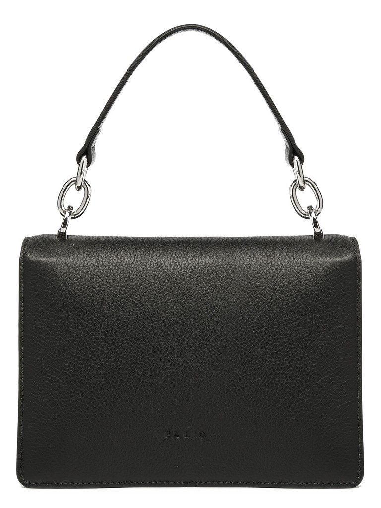 Женская сумка торговой марки Palio из натуральной кожи. Модель закрывается клапаном на магнитную кнопку. Содержит внутри один отдел, сбоку имеется отделение. Высота ручки – 12,5 см. Максимальная длина регулируемого съемного плечевого ремня из натуральной кожи – 124 см, ширина – 1,5 см. Модель не имеет ножки на дне. Не вмещает формат А4.