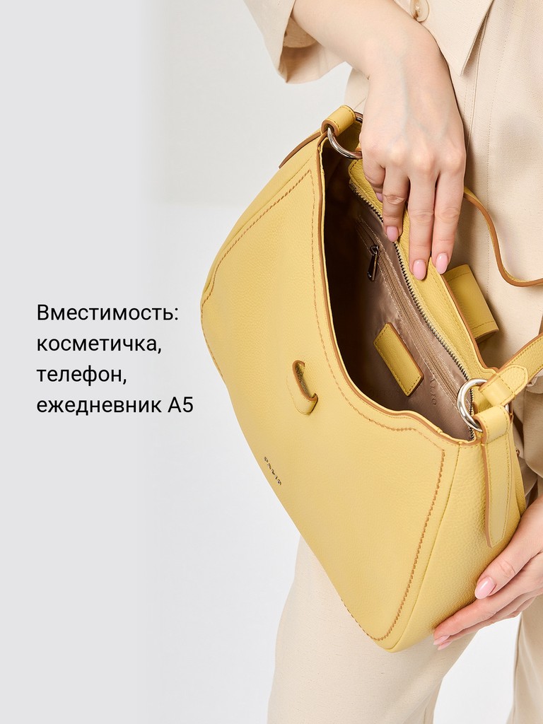 Женская сумка торговой марки Palio из натуральной кожи. Модель застегивается на молнию и закрывается хлястиком. Содержит внутри один отдел, в котором имеются карман на молнии и два открытых кармана. На задней стенке есть карман на молнии. Высота ручки – 26 см. Максимальная длина регулируемого съемного плечевого ремня из текстиля - 129 см, ширина – 4 см. Модель не имеет ножки на дне. Не вмещает формат А4.
