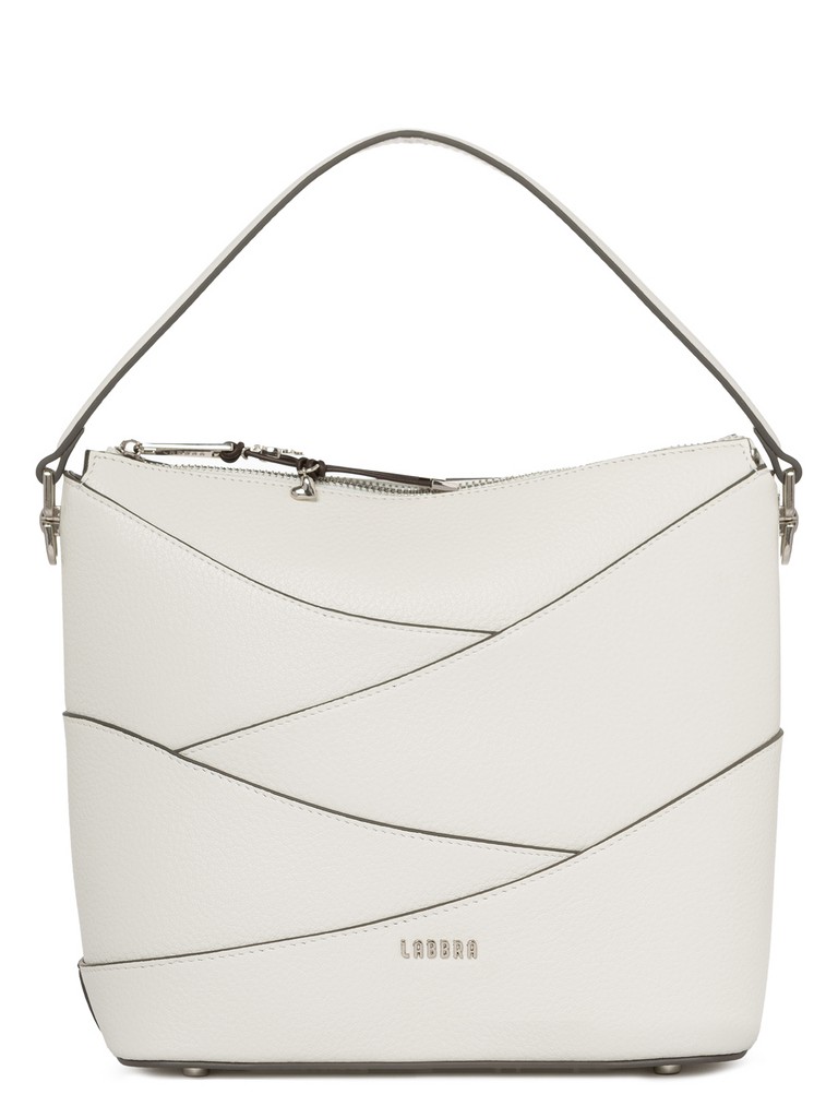 Женская сумка торговой марки Labbra из натуральной кожи. Новая айдентика любимого бренда представлена в оригинальной подвеске из кожи с авторской фурнитурой. Модель застегивается на молнию. Содержит внутри один отдел, в котором имеются карман на молнии и два открытых кармана. Высота ручки - 12 см. Максимальная длина регулируемого съемного плечевого ремня из натуральной кожи - 117 см, ширина - 1,5 см.  Модель имеет ножки на дне. Не вмещает формат А4.