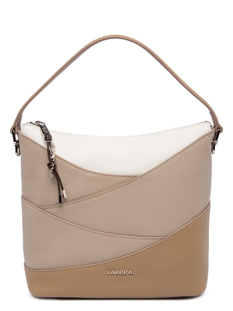 Женская сумка торговой марки Labbra из натуральной кожи. Новая айдентика любимого бренда представлена в оригинальной подвеске из кожи с авторской фурнитурой. Модель застегивается на молнию. Содержит внутри один отдел, в котором имеются карман на молнии и два открытых кармана. Высота ручки - 12 см. Максимальная длина регулируемого съемного плечевого ремня из натуральной кожи - 117 см, ширина - 1,5 см.  Модель имеет ножки на дне. Не вмещает формат А4.