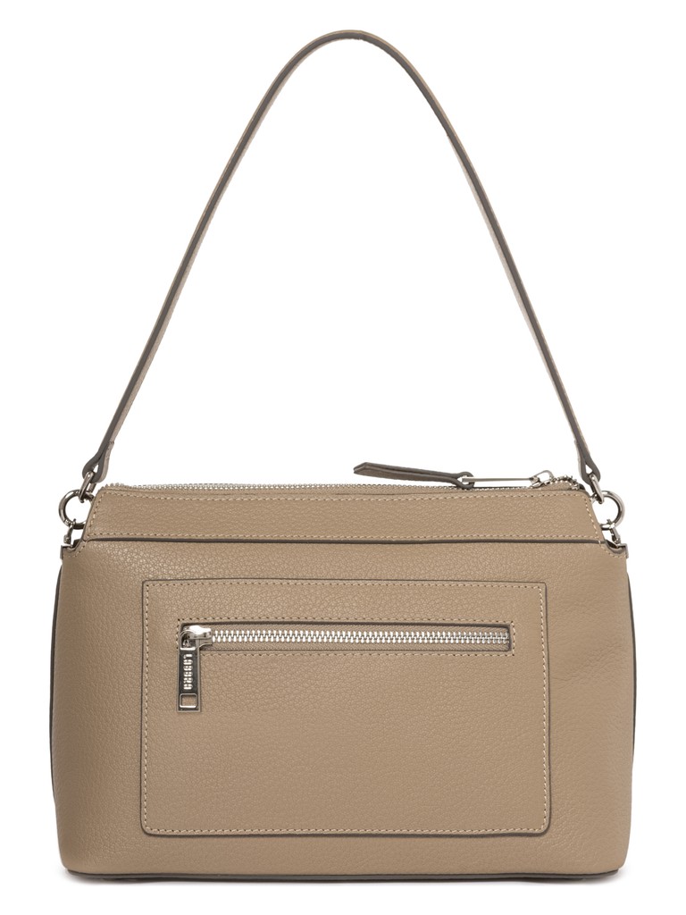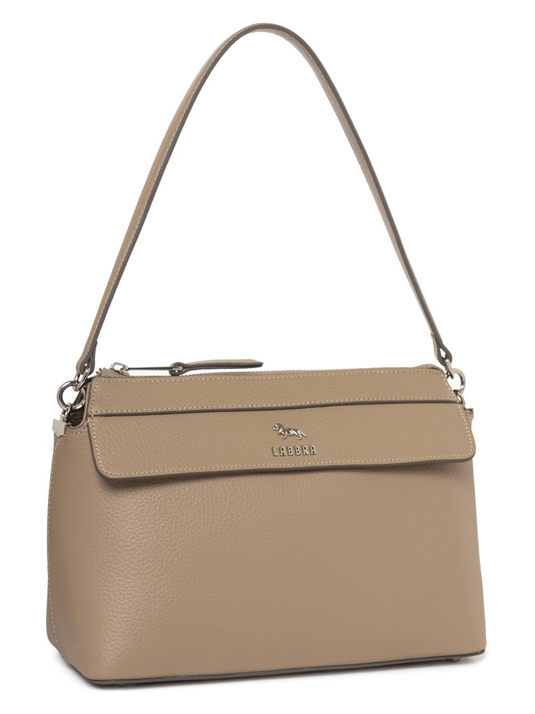Женская сумка торговой марки Labbra из натуральной кожи. Модель застегивается на молнию. Содержит внутри один отдел, в котором имеются два открытых кармана и карман на молнии. На передней стенке под клапаном есть открытый карман, на задней - карман на молнии. Высота съемной ручки – 15 см. Максимальная длина регулируемого съемного плечевого ремня из текстиля - 133 см, ширина – 4 см. Модель имеет ножки на дне. Не вмещает формат А4.