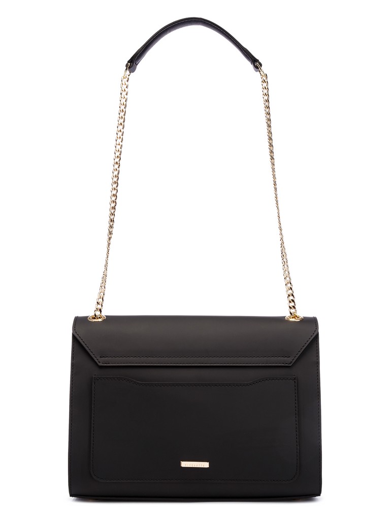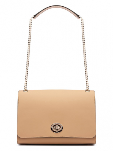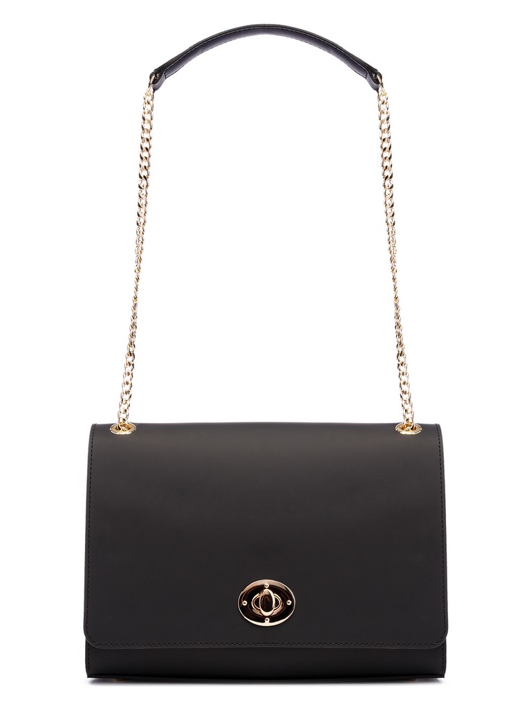 Женская сумка торговой марки Eleganzza из натуральной кожи. Модель закрывается клапаном на замок. Содержит внутри один отдел, в котором имеются карман на молнии и два открытых кармана. На задней стенке есть открытый карман. Высота ручки из металлической цепочки со вставкой из кожи - 60 см. Ручка трансформируется из одной в две. Высота двух ручек - 30 см. Модель имеет ножки на дне. Не вмещает формат А4.
