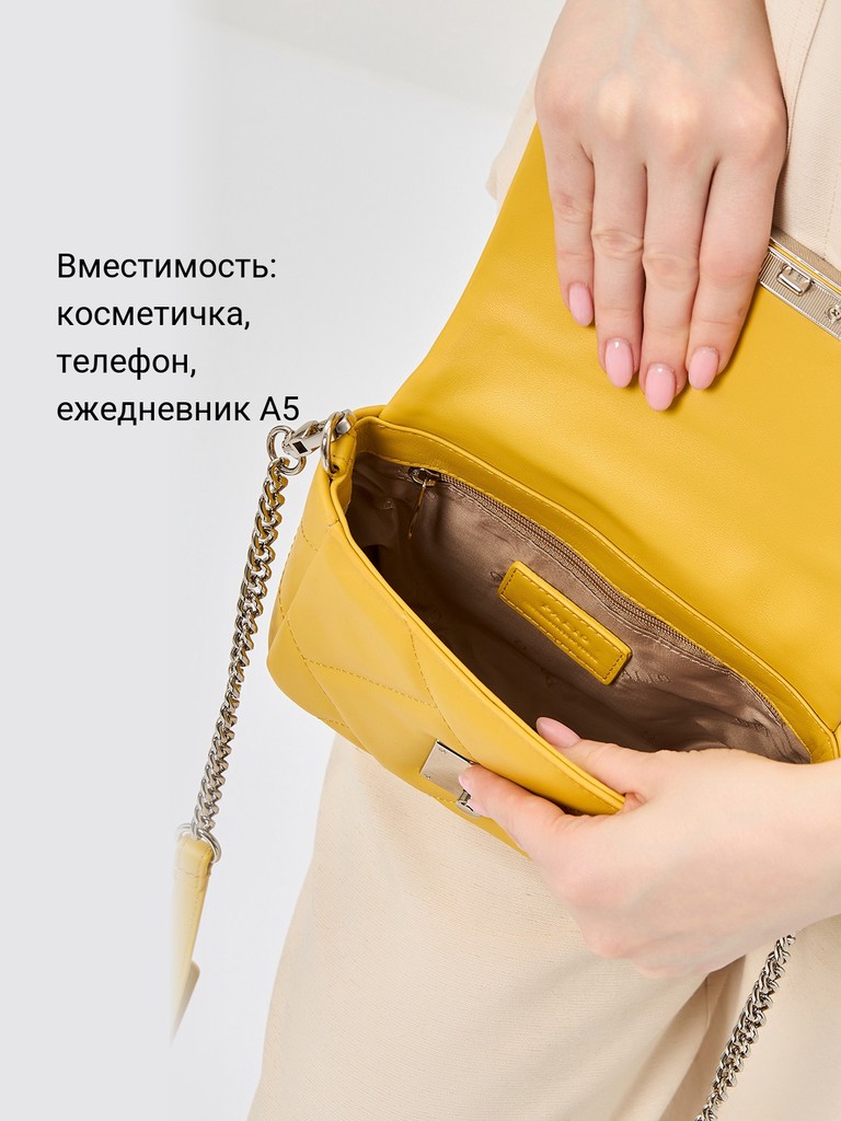 Женская сумка торговой марки Palio из натуральной кожи. Модель закрывается на клапан с замком и имеет одно отделение с карманом на молнии и открытым карманом. Длина регулируемого несъёмного наплечного ремня из натуральной кожи со вставками из металлической цепочки - 120 см. Модель не имеет ножки на дне.