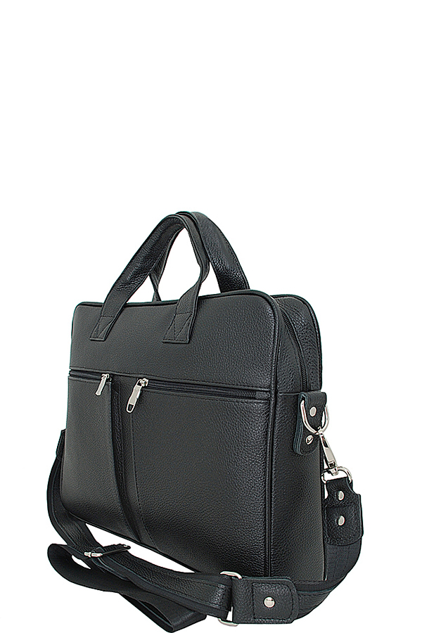 Сумка мужская со съемным регулируемым ремнем-стропой через плечо. Свободно вмещает формат А4. Имеет удобные прочные ручки. Застегивается на молнию,имеет одно отделение со средником внутри. Стропа ремня имеет отделку из кожи. На передней стенке расположены функциональные накладные карманы на молнии. На задней стенке также имеется карман на молнии. На подкладке есть карманы на молнии и накладной карман для мобильного телефона и визиток.