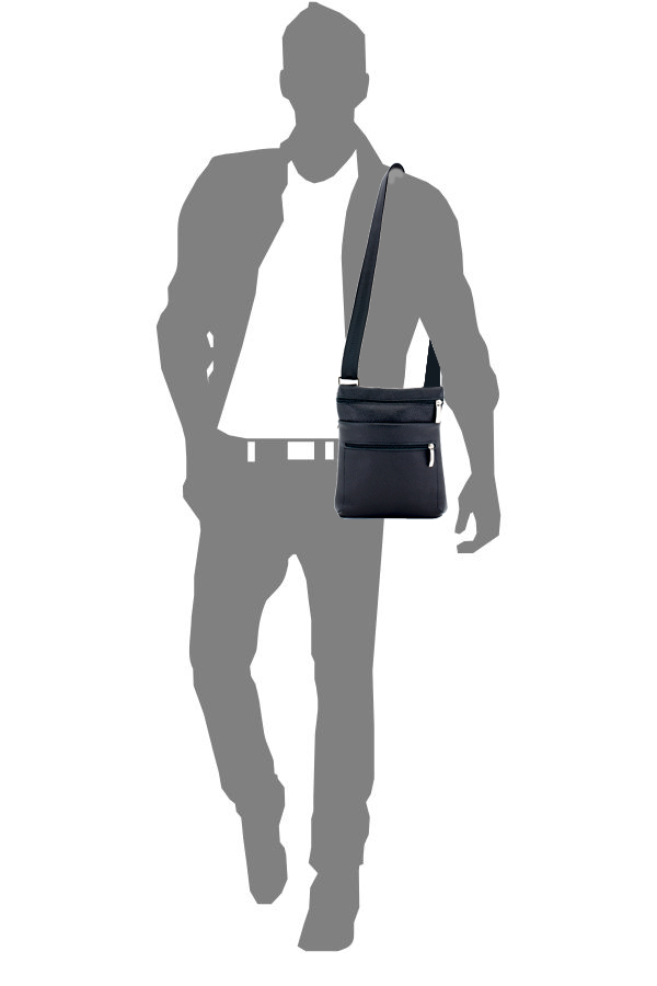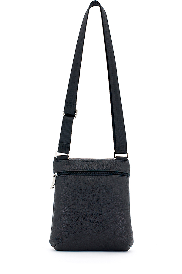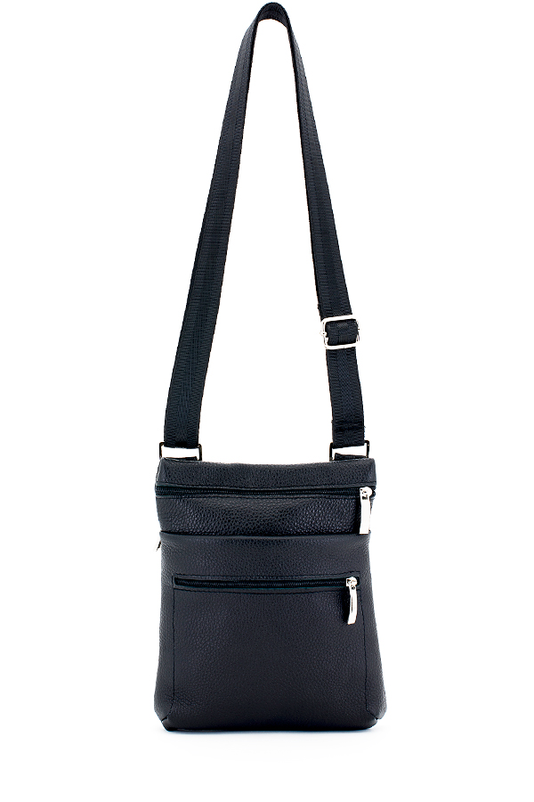 Сумка мужская небольшого размера с несъемным регулируемым ремнем-стропой через плечо. Сумка застегивается на молнию и имеет одно отделение. На передней стенке расположены два кармана на молнии и внутренний карман. На задней стенке расположен карман на молнии. Сумка на подкладке. Внутри сумки есть накладной карман на молнии.