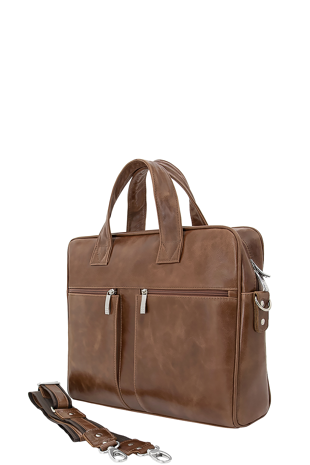 Сумка мужская со съемным регулируемым ремнем-стропой через плечо. При необходимости вмещает формат А4. Застегивается на молнию и имеет одно отделение, удобные прочные ручки. На передней стенке расположены функциональные накладные карманы на молнии. На задней стенке также есть карман на молнии. Сумка на подкладке. Внутри сумки расположен средник на молнии из плотного материала, два кармана на молнии и накладной карман для мобильного телефона и визиток. Выполнен из кожи с особенным эффектом на поверхности. Привлекательный внешний вид достигается за счет изломов воскового покрытия. Благодаря этому готовые изделия и сама кожа становятся светлее в местах сгибов и частых прикосновений.