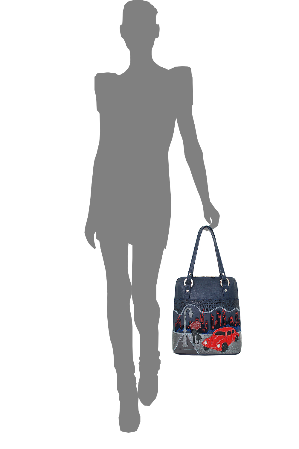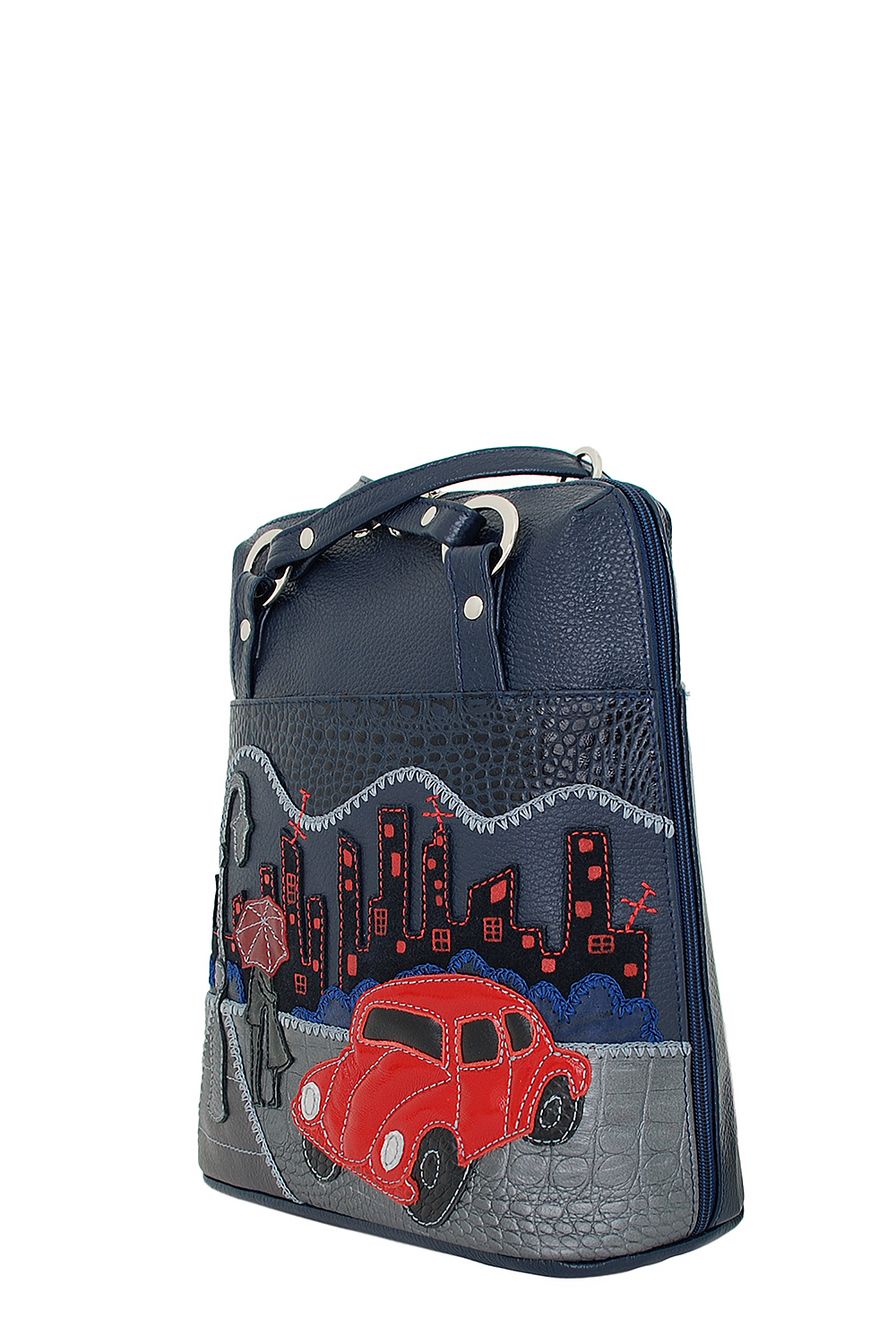 Сумка-трансформер женская с аппликацией "Город №30" и удлиненными ручками на плечо. Сумка застегивается на молнию и имеет одно отделение. Ручки сумки легко затягиваются в лямки рюкзака и регулируются по длине. Ручки имеют отделку металлической фурнитурой. На задней стенке расположен карман на молнии. Сумка-трансформер на подкладке. Внутри сумка имеет средник на молнии из плотной материала,карман на молнии и накладной карман для мобильного телефона и визиток.