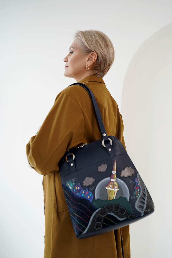 Сумка с аппликацией в заказе может незначительно отличаться от оригинала (фото) по фактуре и оттенку кожи. "Город №13"