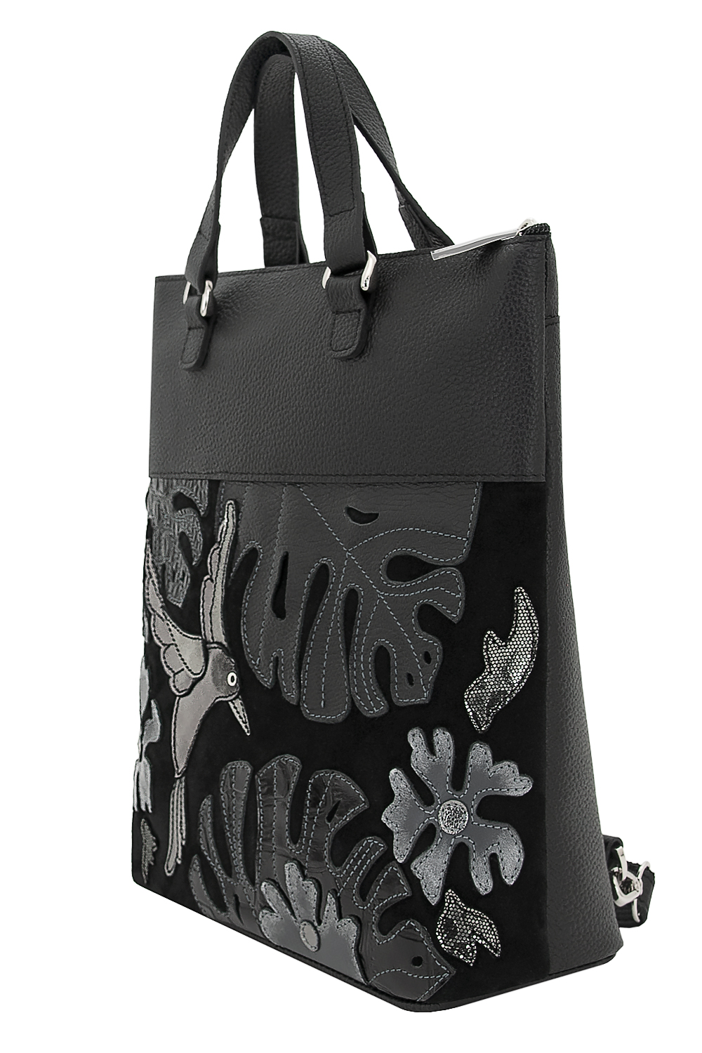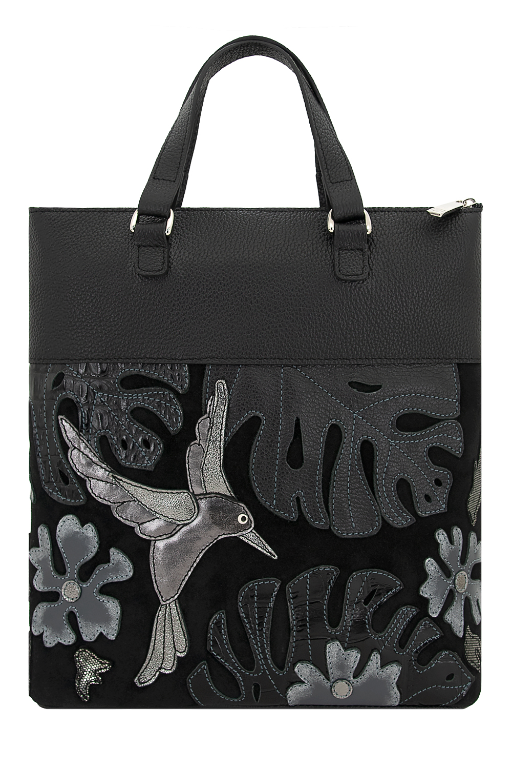 Сумка с аппликацией в заказе может незначительно отличаться от оригинала (фото) по фактуре и оттенку кожи. "КОЛИБРИ №1"