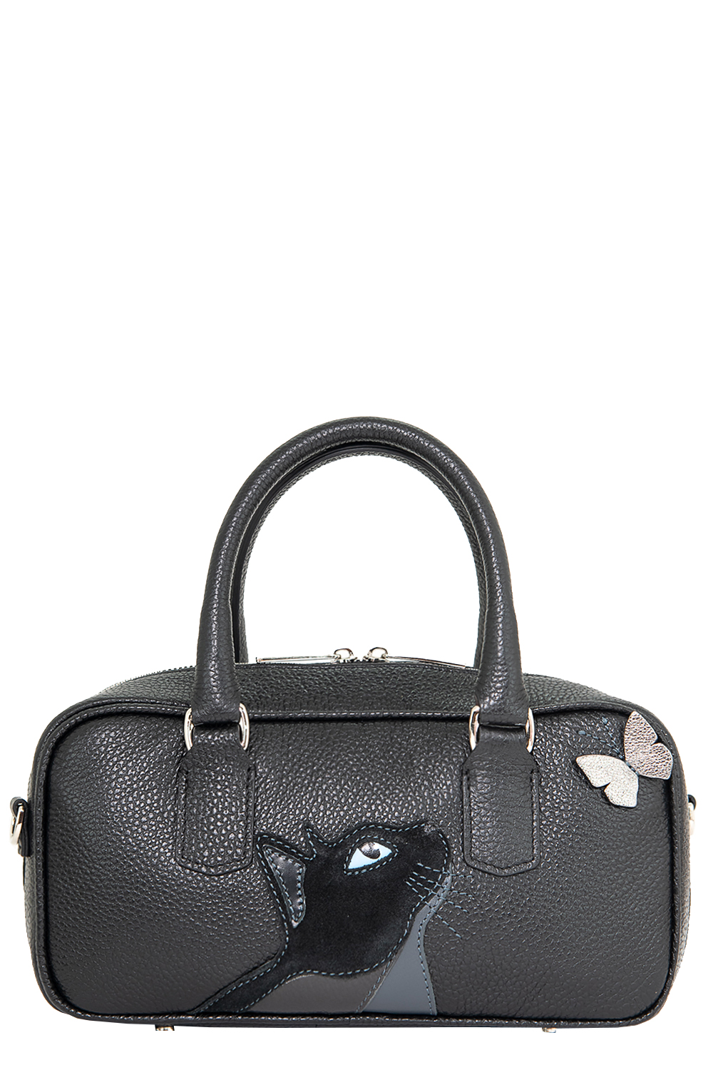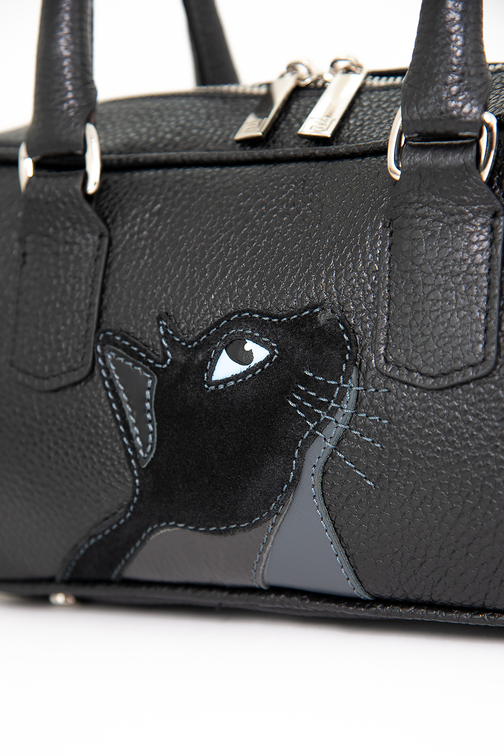 Сумка женская с аппликацией "Котик" полужесткой формы со съемным регулируемым ремнем через плечо. Сумка застегивается на молнию и имеет одно отделение. Сумка на подкладке. Внутри сумки карман на молнии и большой открытый карман для телефона и мелочей. Металлические ножки для защиты дна сумки.