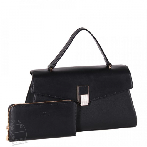 Элегантная модель сумки-сетчел в комплекте с кошельком, из экокожи. Декорирована красивой пряжкой. Дополнена золотистой фурнитурой. Данная модель закрывается на клапан. Каркас жесткий. Носится в руке за ручку или на плече, с помощью ремня.