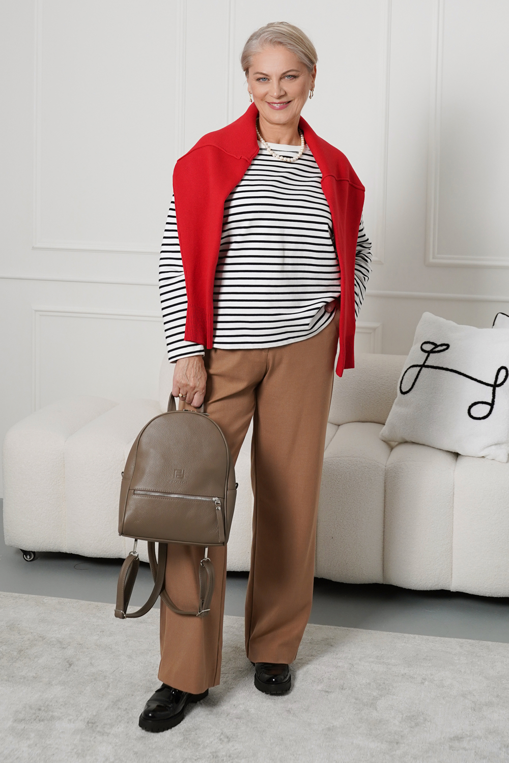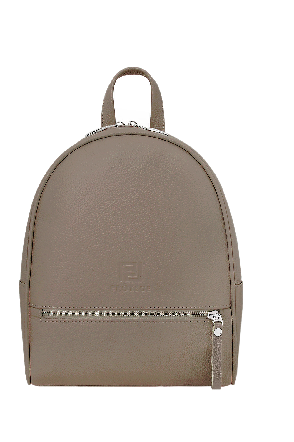 Сумка-рюкзак женская среднего размера. Застегивается на молнию и имеет одно отделение. На передней стенке расположен карман с металлической молнией. На задней стенке также есть карман. Лямки рюкзака регулируются по длине. Сумка-рюкзак на подкладке. Внутри расположен карман на молнии и накладной карман для мобильного телефона и визиток.