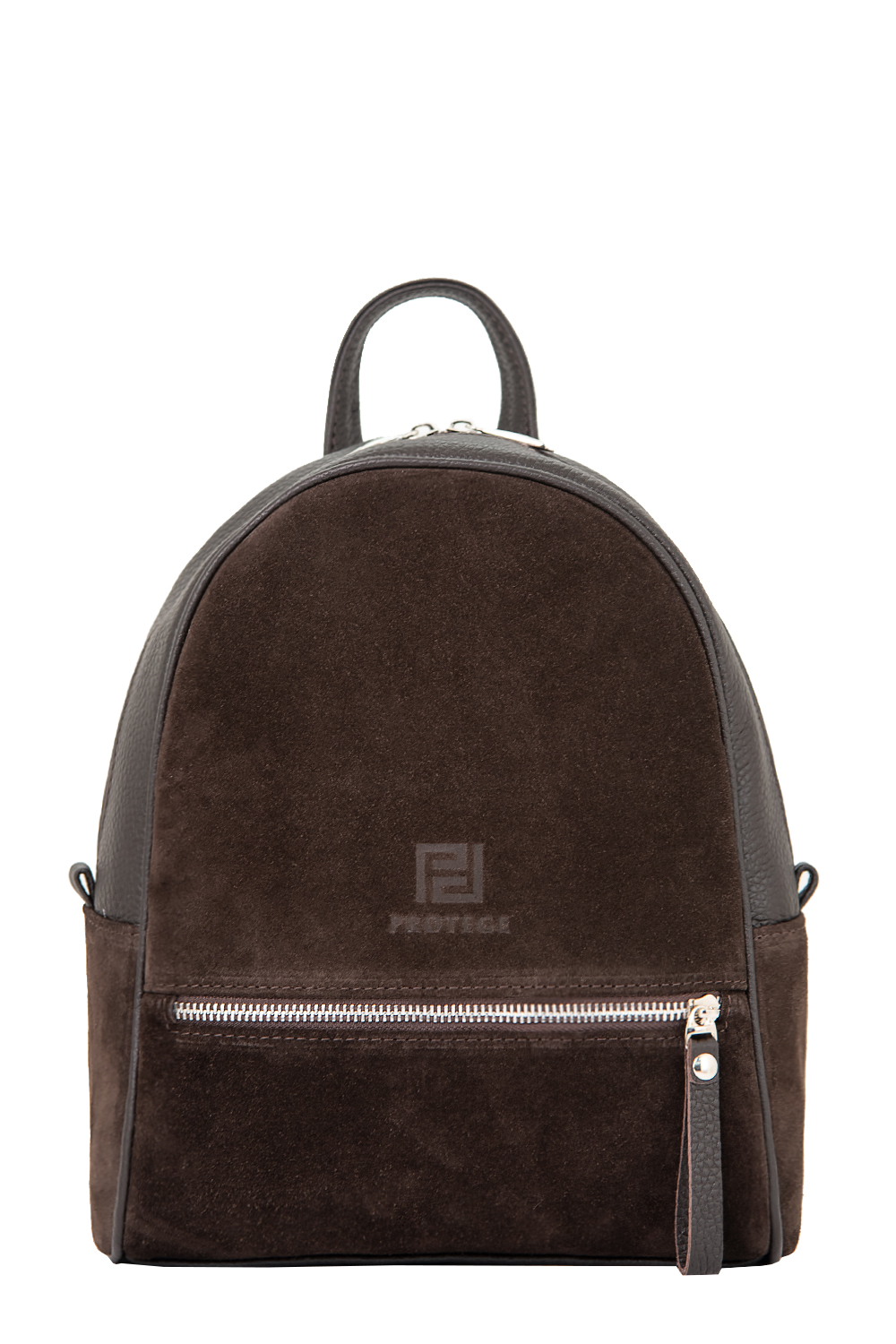 Сумка-рюкзак женская среднего размера. Застегивается на молнию и имеет одно отделение. На передней стенке расположен карман с металлической молнией. На задней стенке также есть карман. Лямки рюкзака регулируются по длине. Сумка-рюкзак на подкладке. Внутри расположен карман на молнии и накладной карман для мобильного телефона и визиток.