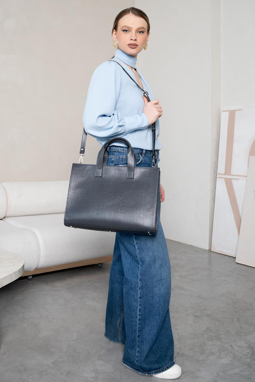 Сумка женская со съемным регулируемым ремнем через плечо. Сумка застегивается на молнию и имеет одно отделение. На задней стенке расположен карман на молнии. Сумка на подкладке. Внутри сумка имеет карман на молнии и карман накладной карман на молнии "карман в кармане" из плотного материала. Cумка имеет большой объем, в нее легко помещаются документы формата А 4 в пластиковой папке. При этом она легкая , удобная в носке, полужесткий каркас предотвращает помятость на документах. Удобная модель для женщин работающих с большим объемом документов.